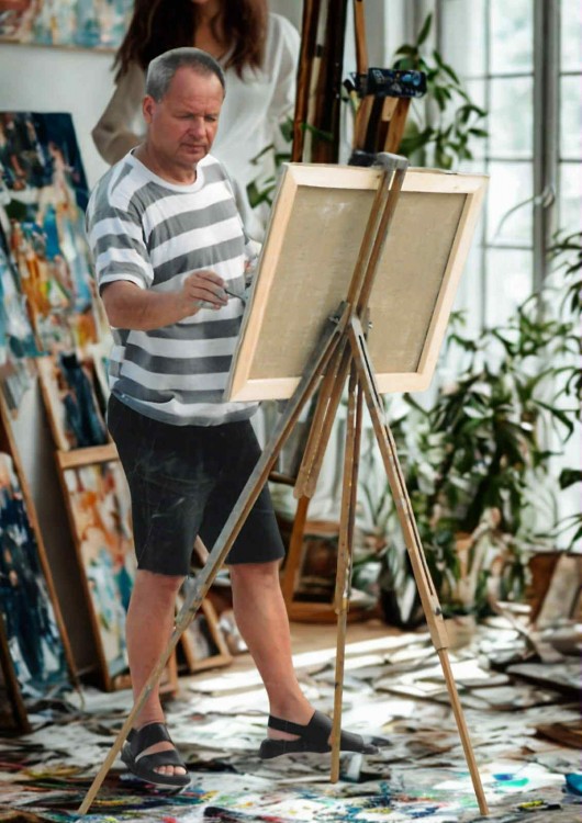 Potem ja z moim mężem Grzegorzem odwiedziliśmy Artystę w jego mieszkaniu przy ul.Grobla, mieszkaniu, które było galerią jego obrazów.