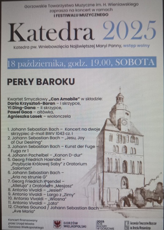 Gorzowskie Towarzystwo Muzyczne zaprasza na kolejne koncerty w ramach Festiwalu Muzycznego w katedrze. Tym razem 18 października o godz. 19 wystąpi kwartet smyczkowy „Con Amabile”.