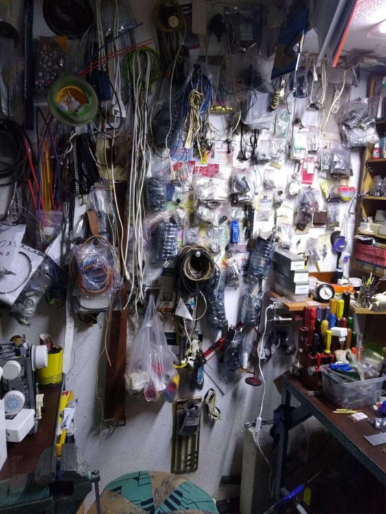 – Przez 25 lat dekorowałem tę ścianę. To jest przegląd całej działalności w tym lokalu. Na tej ścianie umieszczałem różne elementy maszyn, najpierw były to paski, potem gdy kupowałem jakieś części, to zazwyczaj nabywałem więcej niż jedną, żeby mieć na zapas. Te nadliczbowe wkładałem do woreczków i wieszałem na ścianie. Niektóre to są takie drobiazgi, że można było wziąć je tylko pęsetą. Półki miałem też, ale one były do grubszych rzeczy.