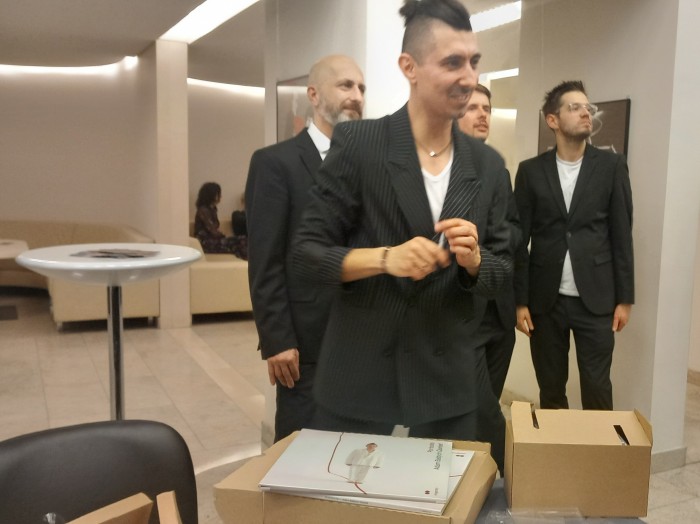 Po zakończonym koncercie słuchacze mogli kupić płytę Adama Bałdycha. Ja skorzystałam z okazji aby sfotografować się z Muzykiem, o którym między innymi napisałam w książce zatytułowanej „Artysta znaczy wiele” wydanej przez Wojewódzką i Miejską Bibliotekę Publiczną im. Zb. Herberta w 2018 roku.