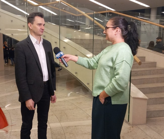 Na zdjęciu: Dawid Troczewski w rozmowie z Karoliną Naduk z TVP3